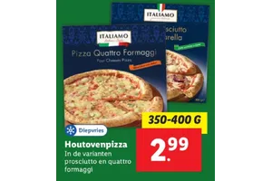 De aanbieding geldt voor het product Pizza Quattro Formaggi uit de categorie Kant-en-klaar. Deze aanbieding van Italiamo kan worden omschreven met de woorden Pizza, italiamo en houtovenpizza. Helaas is deze aanbieding afgelopen, bekijk andere aanbiedingen van Italiamo.