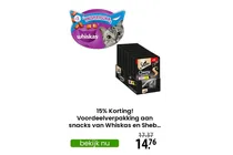 Sheba is het merk op het gebied van voeding voor uw kat. Ze maken zeer geraffineerde maaltijden op basis van hun unieke recepten. Naast de rijke smaak bieden de maaltijden ook een goede basis voor de gezondheid uw kat, want ze zitten boordevol voedingsstoffen. De producten met een visrecept voldoen aan het MSC-keurmerk voor duurzame visserij en hier worden geen smaak- of kleurstoffen aan toegevoegd. Sheba, voor verantwoord genieten, elke dag weer.